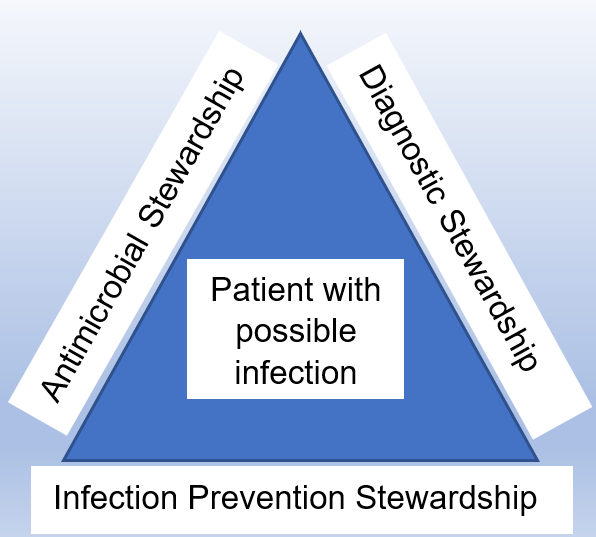 Dik et al. (2015) perhaps were one of the first to use the term diagnostic stewardship in the way that we think of it today when they proposed a trio of interlinking stewardship programmes: 1) diagnostic, 2) antimicrobial, and 3) infection prevention, as a multidisciplinary approach to the management of a patient with an infection (Figure 1).